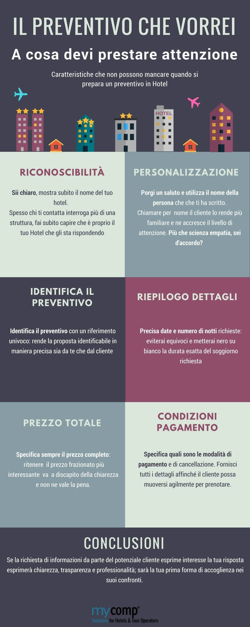 Quali sono, quindi, le caratteristiche principali che un preventivo D.O.C. per Hotel deve avere? Te lo dico con questa infografica.